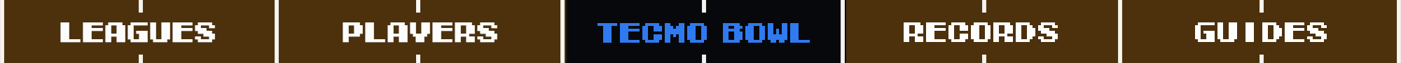 Players | Tecmo Bowl League Tecmo Bowl League | Articles Tecmo Bowl League | Records Tecmo Bowl League Tecmo Bowl League | Seasons